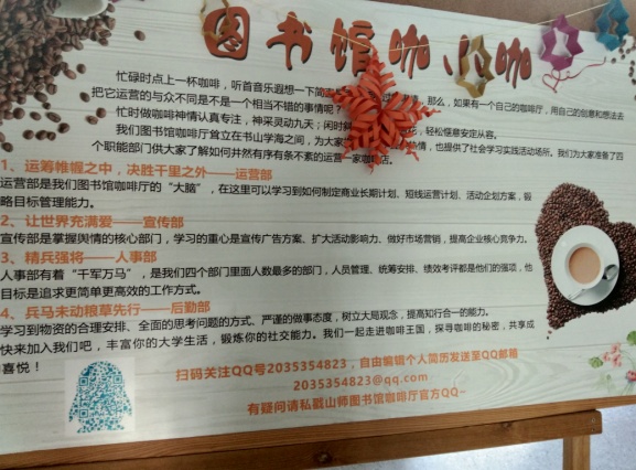 山东师范大学图书馆苏老师及其志愿者带领我馆志愿者们进行了参观学习。苏老师以“书香路•志愿情•育人行”为主题展开了对“天地书声”图书馆及志愿者协会的细致介绍。通过介绍,了解到山师志愿者协会十年来的发展历程,惊叹于他们先进的管理理念和完善的管理体制。随后,苏老师又带领我们参观了自习室、密集书库、咖啡厅等空间。