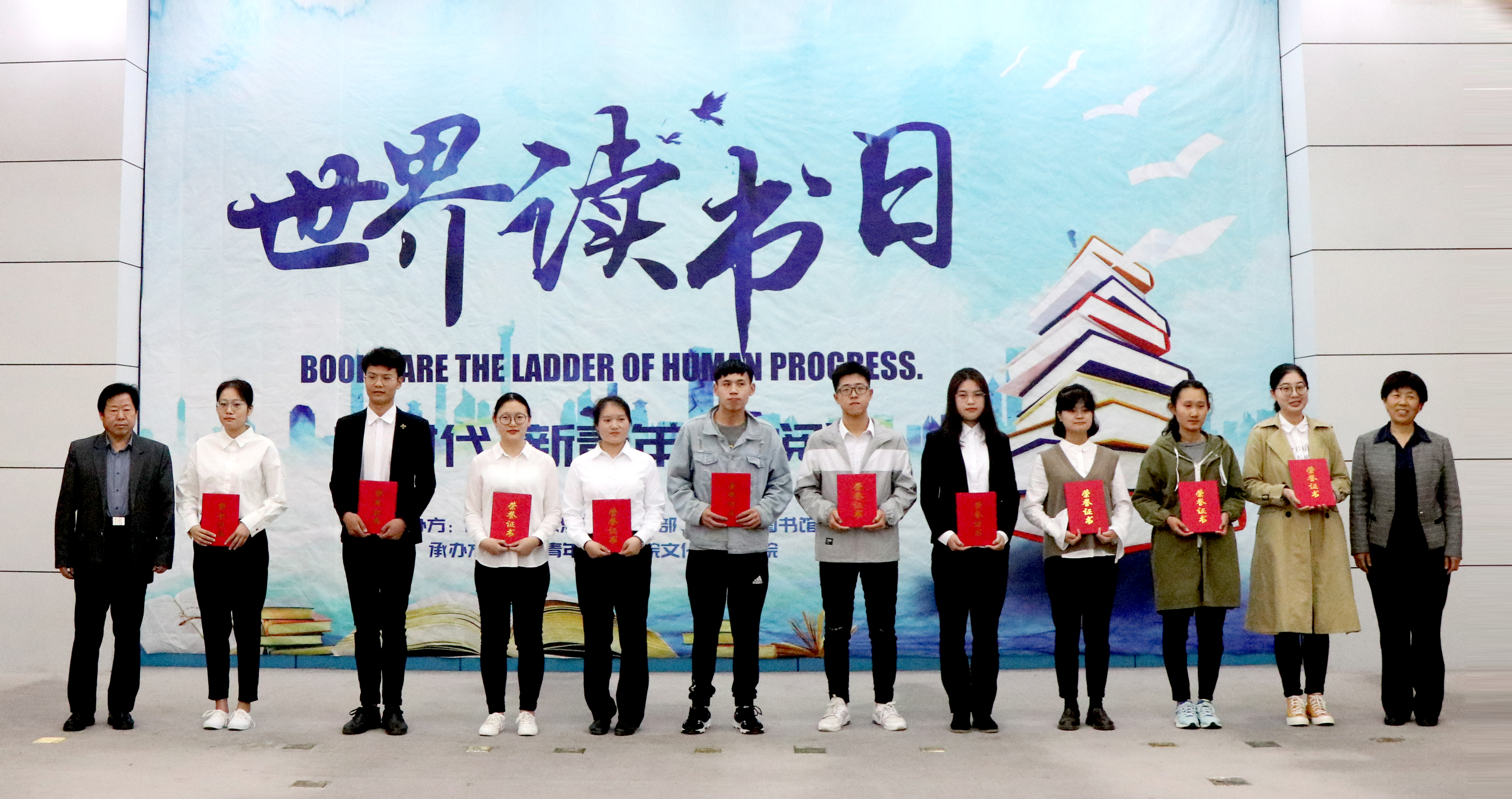紧接着,仪式表彰了以政治与公共管理学院学生陈婧为代表的十名荣获“2018年度山青十大阅读之星”称号的同学和以现代服务管理学院学生张昕悦为代表的十名荣获“2018级十大阅读新星”称号的同学,并为获奖同学颁发了荣誉证书。