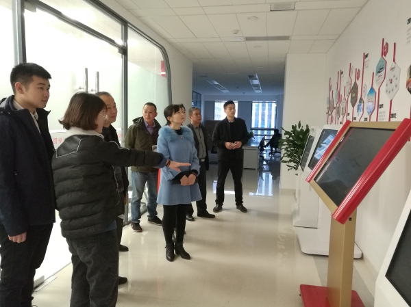 交流中,图书馆就目前馆内系统升级、设备更新、互联网教学平台运用、机构知识库构建、电子图书存储等问题进行了深入探讨,对瀑布流终端展示机、大数据分析展示平台进行了详细考察。