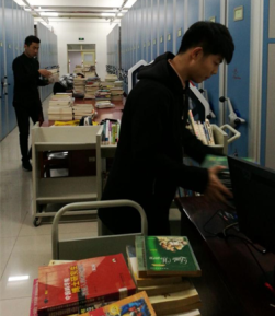 4月22日五楼学术研究中心调拨大约两千余册图书到密集书库,流通部老师和助馆的同学们,紧锣密鼓的将图书进行调拨、分类再上架。
