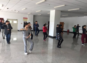 现代广场舞是图书馆自编自导的一种现代舞蹈,其目的在于通过快节奏的节拍,跳跃的舞步消除大家工作中的疲劳。