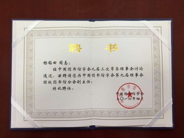 中国图书馆学会九届三次常务理事会召开,经讨论,杨锡田馆长被聘任为中国图书馆学会第九届理事会团校图书馆分会副主任。