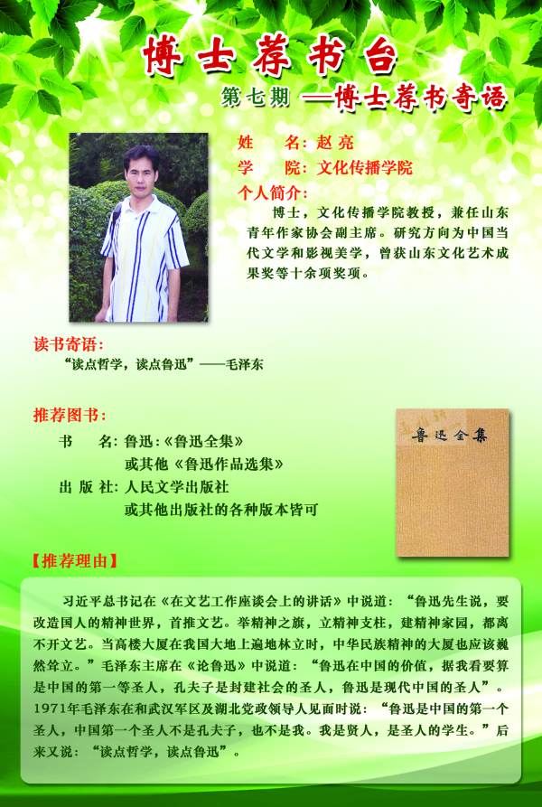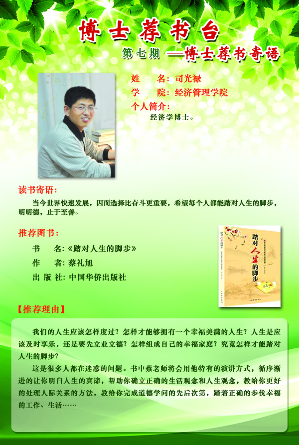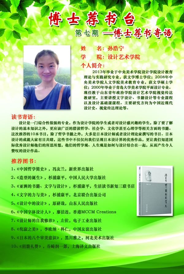 八位博士教师推荐的图书海报将在图书馆二楼大厅陆续展出,欢迎大家关注!