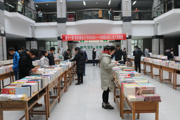 11月23日,第十一届“读者服务月”系列活动——“中教图书线上线下荐购会”在图书馆二楼大厅举办。本次荐购会有北京大学出版社、清华大学出版社、化学工业出版社、机械工业出版社、科学出版社等多家大型出版社参加,涉及政治、经济、管理、外语、社会科学、计算机等各学科,有近万种本年度畅销图书供大家现场推荐或购买。