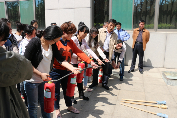 活动中,杨锡田馆长对全馆的消防安全工作做了简要总结,指出当前存在的问题,要求全馆工作人员,要高度重视消防安全工作,遇到火灾等突发情况要镇静、有序,迅速做出应急反应,科学应对火情。杨怀锡为大家讲解遇到火情时,如何在第一时间报警、灭火,如何科学有序的疏散和逃生,并介绍了逃生的技巧和方法。最后,杨怀锡和图书馆流通部副主任李淑龙为大家现场演示了灭火器、报警器和消防栓的使用方法及注意事项,并组织大家进行了实际演练,使参加演练的人员基本掌握了消防基本技能,以及灭火器、消防栓的使用方法。