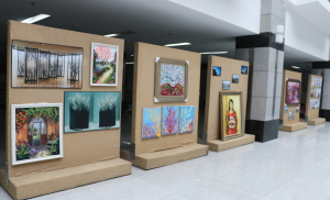 4.精美艺术作品展提升新生的文化品味。设计艺术学院的师生将自己的精美艺术作品在图书馆二楼大厅进行展览,作品内容形式多样、主题鲜明、生动形象。