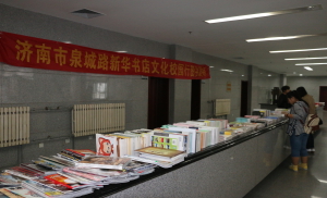 6.新华书店为广大新生和老生提供购书方便。图书馆邀请济南市泉城路新华书店于2014年9月13-15日连续三天在图书馆二楼大厅东侧举办新版图书展,全部图书九折优惠,学生在书店提供的3000多种新书中尽情挑选自己喜欢的书籍。