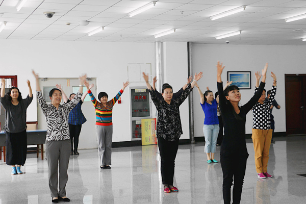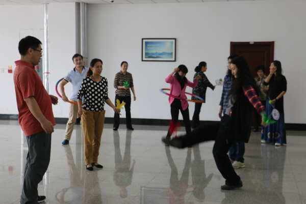 为响应学校工会健身日活动要求,提高图书馆全体教职工健身意识和身体素质,图书馆妇委会、工会发起了图书馆全体教职工健身活动。活动自9月10日教师节当天起始,每周两次,每次一个小时,该活动得到了图书馆教职工的热烈响应和一致好评。健身活动分两部分,第一部分为集体活动,大家一起做广播体操、太极拳、健美操等,第二部分为自由健身活动,包括跳绳、踢毽子、乒乓球、呼啦圈、柔力球等。