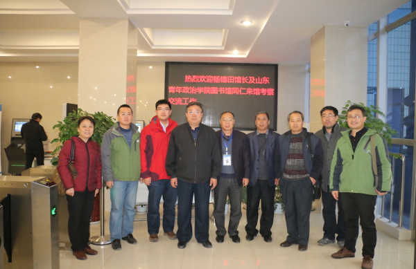 11月20日,杨锡田馆长一行八人赴山东政法学院图书馆考察学习,与山东政法学院毕云林馆长、胡杨副馆长进行座谈。