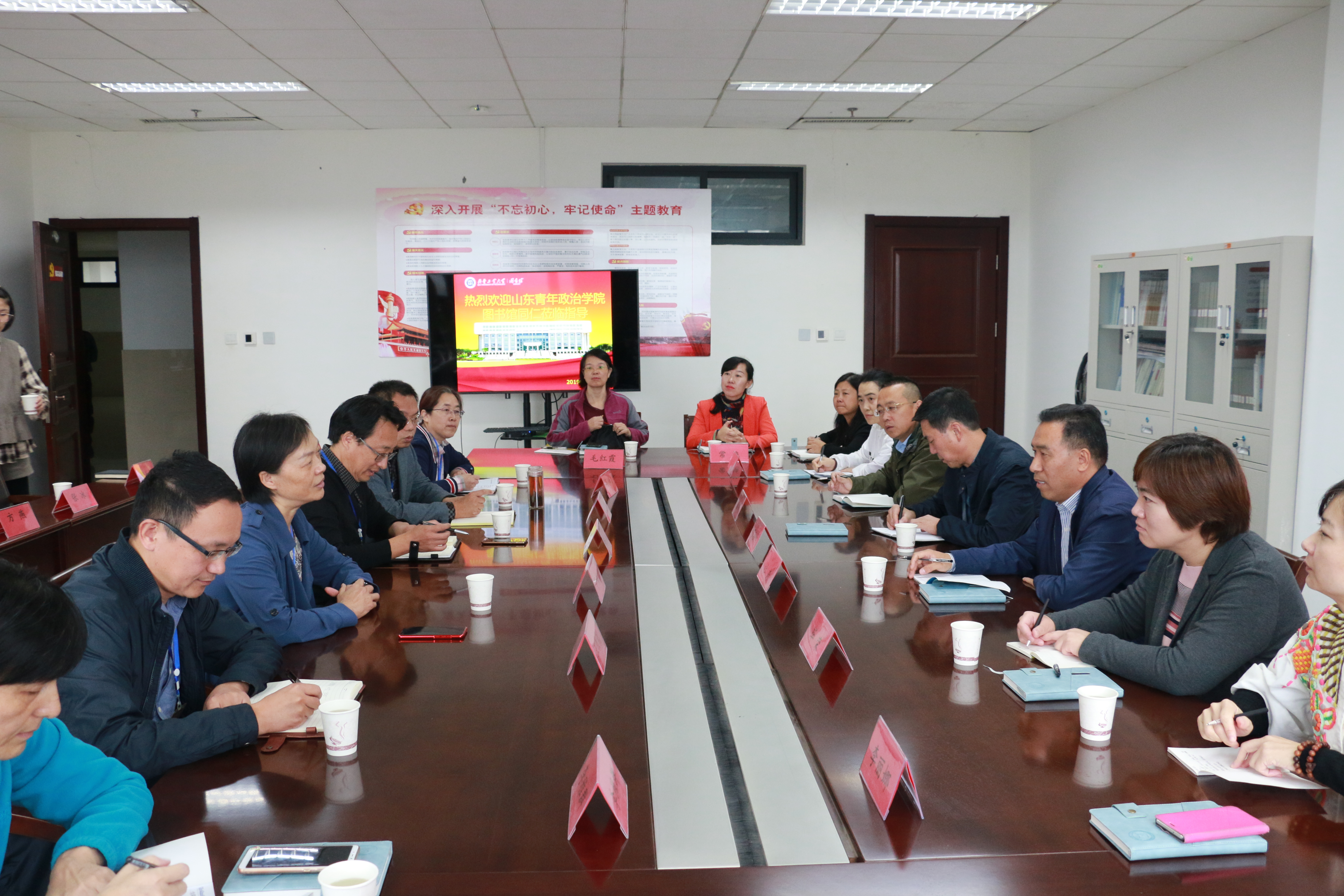 为深入推进学校“一强化两拓展”发展战略和申硕工作,确保“不忘初心、牢记使命”主题教育取得实效, 10月11日上午,图书馆馆长杜秀,党总支书记丁英峰,副馆长鲁鹏、毕荣等一行13人赴齐鲁工业大学图书馆进行学习考察。