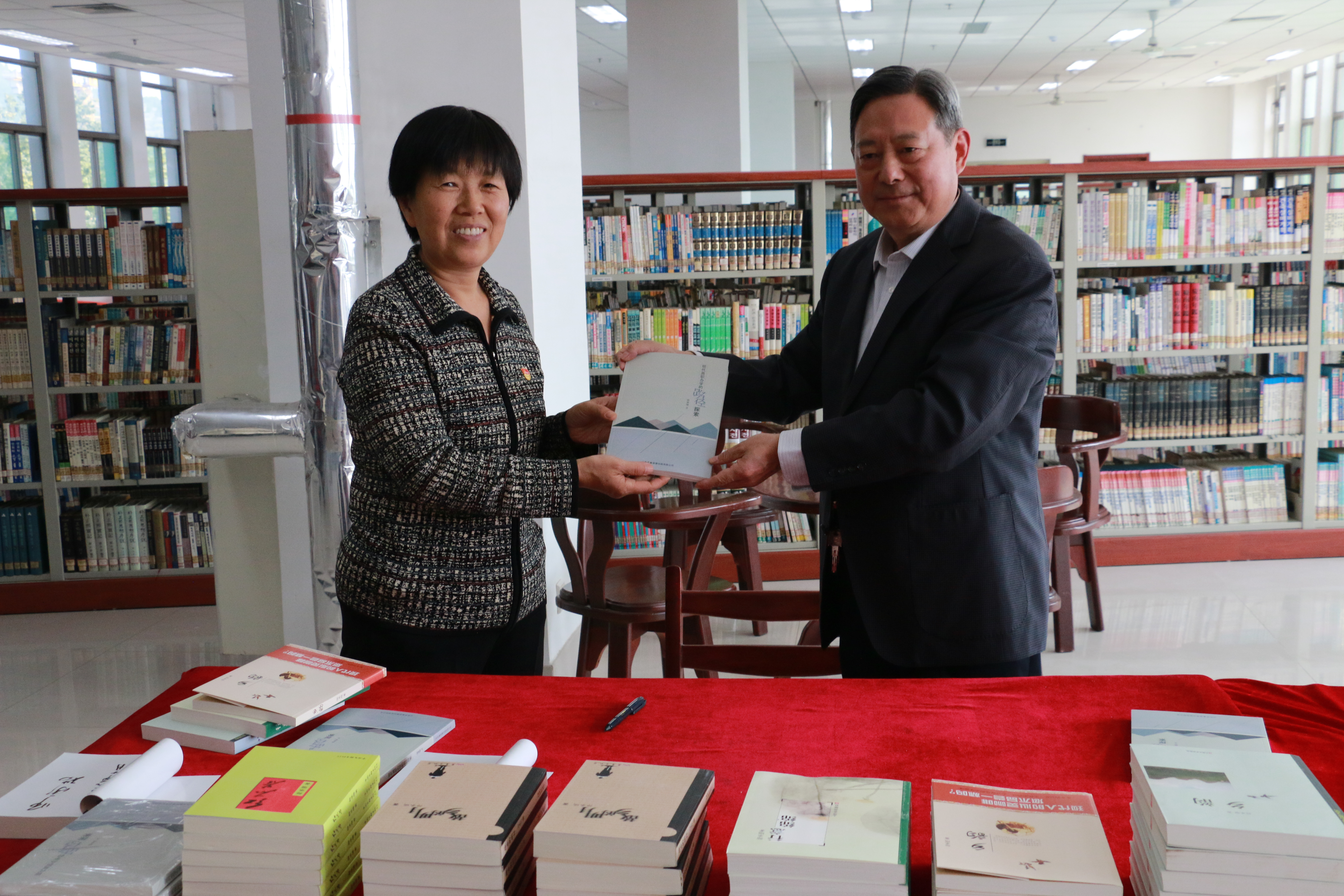 10月21日,师承瑞签字捐书仪式在我校图书馆五楼工具书特藏阅览室举行,校领导李玉英、图书馆馆长杜秀、副馆长毕荣出席了捐书仪式。