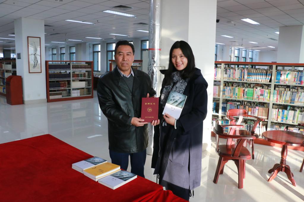 12月12日,杨小舟教授和冯现冬副教授捐书仪式在图书馆五楼工具书特藏阅览室举行。图书馆馆长杜秀出席了捐书仪式。