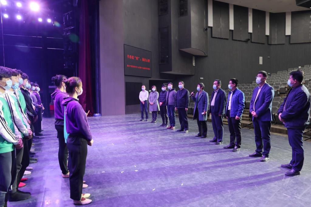 校领导李玉英、宣传部、国际交流处、团委、图书馆、经济管理学院、舞蹈学院等部门负责人和有关同志与国际学生及参加战“疫”舞蹈诗《逆行》排练活动的剧组人员共同参加了启动仪式。启动仪式上,李玉英等向国际学生和战“疫”舞蹈诗《逆行》排练活动的剧组人员赠送了《中华民族的故事》《红星照耀中国》《青春之歌》《梁家河》《大家小书》《文化苦旅》《活着》等经典书籍并讲话,她希望剧组人员在这个同心抗疫的特殊时期里,服从学校统一安排,在排练节目的同时做好个人防护,认真看书学习,提高文化修养。希望国际学生行万里路读万卷书,认真学习专业知识和中国语言文化,为传播中国优秀文化和中外友好交流作出积极贡献。国际学生代表集体朗诵《我爱你中国》,使本届读书月活动赋予了特殊意义。