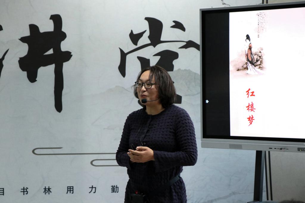 10月22日下午3:00,“青图讲堂”第一期在图书馆五楼东厅如期举行。本期主讲人是文化传播学院郭素媛教授。主讲内容为《红楼梦》前二十回导读。