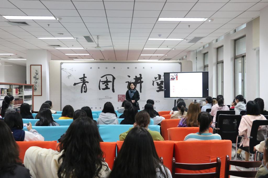 10月29日下午3:00,“青图讲堂”第二期在图书馆五楼东厅如期举行。本期主讲人是文化传播学院刘冰莉老师。主讲内容为《红楼梦》中的衣食住行。