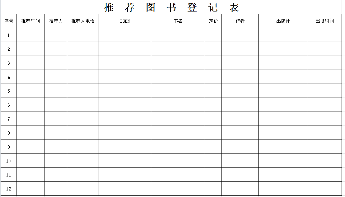 荐购渠道三:借阅厅荐购登记表