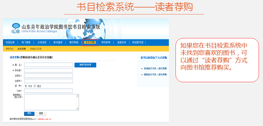 荐购渠道一:图书馆书目检索系统
