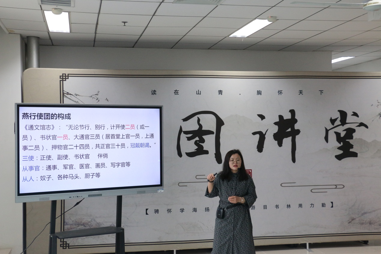 3月18日下午3点,由我校图书馆联合团委共同举办的“青图讲堂”活动再次开讲。第十期“青图讲堂”依旧在图书馆五楼工具书特藏阅览厅顺利进行。本期由文化传播学院讲师李波主讲。讲授内容为《朝鲜使臣的山东印象——以明清时期的〈燕行录〉为中心》。