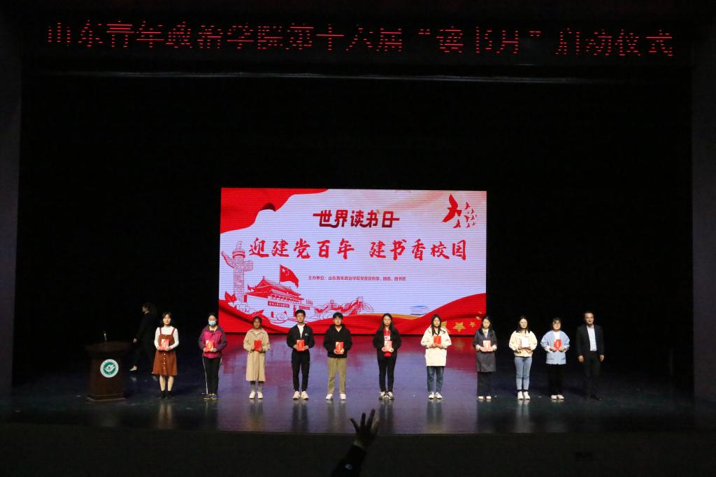 为庆祝中国共产党成立100周年,迎接第26个“世界读书日”,4月22日下午,由图书馆和党委宣传部、校团委联合举办山东青年政治学院第十六届读书月启动仪式在山青剧院隆重举行。本届读书月主题为“迎建党百年,建书香校园”,旨在通过颂读党的故事,赓续党的精神,弘扬中华优秀传统文化,引导和鼓励广大师生阅读经典,回归初心,掀起爱党爱国主题阅读热潮,建设具有青年政治特色的书香校园。