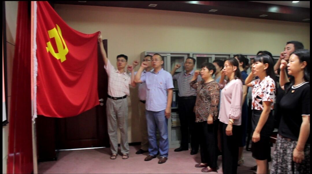 全体党员合唱了《唱支山歌给党听》和《没有共产党就没有新中国》。随着优美的旋律,全体党员挥舞着党旗,饱含深情地歌唱,用歌声表达了对党和祖国的热爱,为中国共产党百年华诞献上最美的赞歌和祝福。随后,全体党员重温入党誓词,重忆入党初心。