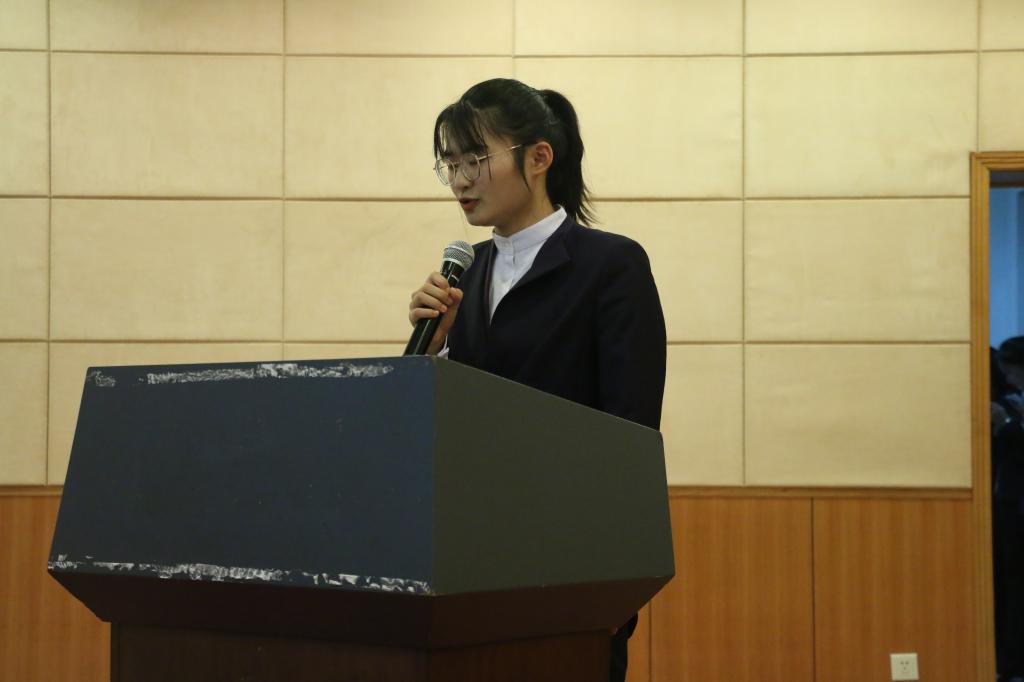 随后,优秀学生馆员代表发言,来自现代服务管理学院2020级的罗冰同学与大家分享了她在图书馆工作的收获和体会。罗冰表示,图书馆是一个为广大师生提供学习的场所,在图书馆工作是很有意义的事情,这将会成为她一生中难忘的回忆。同时她鼓励同学们走出宿舍,走进图书馆,了解图书馆,在知识的海洋里遨游,努力提升个人综合素质,为学校的建设发展贡献微薄的力量。