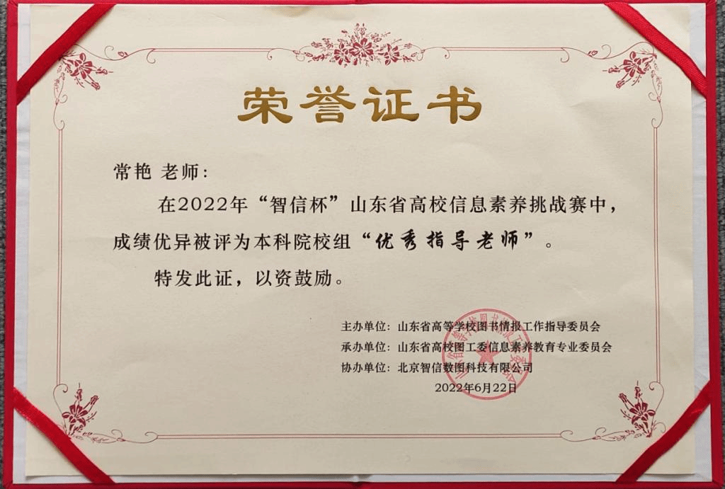 6月18日,“智信杯”山东省高校信息素养挑战赛圆满落幕。本次赛事由山东省高等学校图书情报工作委员会主办,山东省高校图书情报工作委员会信息素质教育专业委员会、山东农业大学图书馆、曲阜师范大学图书馆、山东理工大学图书馆承办。