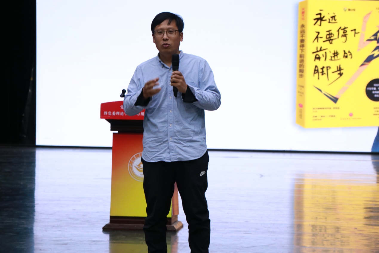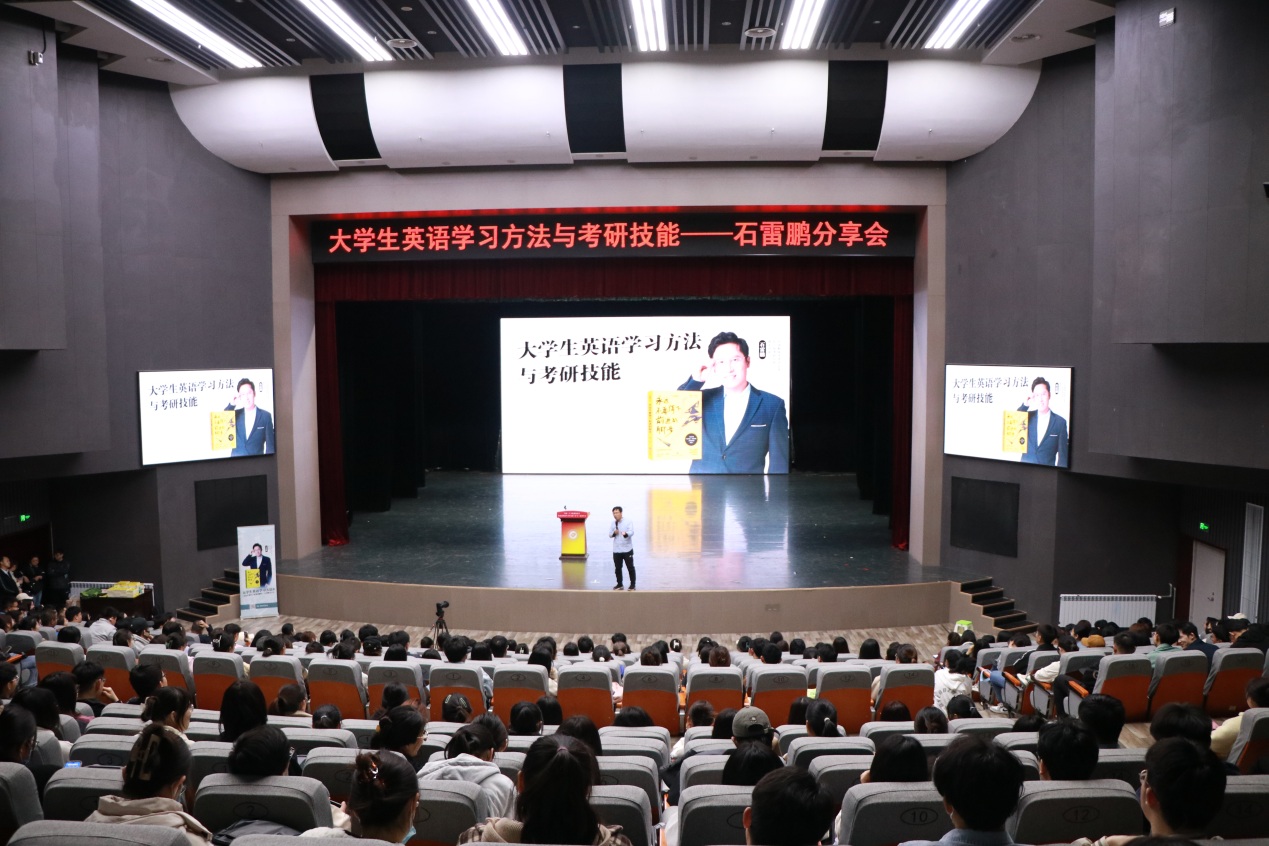 讲座中,石雷鹏从英语背单词的数量和技巧、语法学习、听力练习,以及如何通过“做题+复盘”的方式提高自己的英语水平等方面为同学们进行了讲解。同时,他还用自己亲身的学习经历和考研学生成功上岸的真实案例,告诉大家学习英语没有捷径可走,只有打好基础、脚踏实地,才能真正掌握英语这门技能。石雷鹏用轻松幽默的语言告诉同学们,你可以接受自己的不完美,但不能接受自己的不努力。你的一天怎么过,一生就怎么过。时刻保持为自己充电,学会给生活做减法,给精神做加法。所有的成长,都来自舒适区之外。