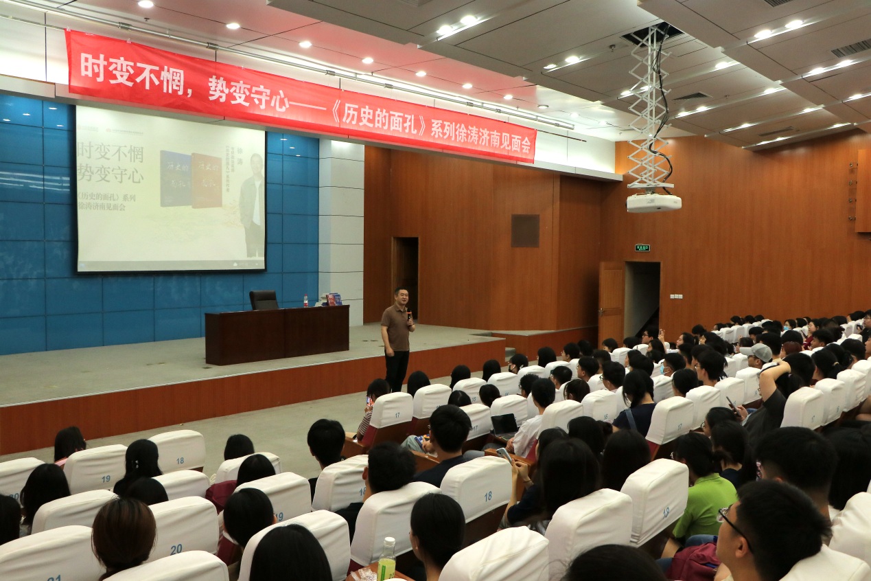 分享会上,徐涛从两个角度为大家分享了人生成长的秘诀。一是要目标坚定。世界百年未有之大变局,给中华民族伟大复兴带来重大机遇,也给青年人一代带来了重大机遇,新时代的青年人是大有可为、大有作为的一代,更是主动作为、担当使命的一代。在这个人人都有机会施展才华的时代,一定要目标坚定。志存高远,方能登高望远。脚踏实地,方能行稳致远。青年人在树立远大目标后,也要从实际出发,把人生的路一步步走稳走实。道虽迩,不行不至;事虽小,不为不成。二是要多读书。读书切忌囫囵吞枣,要在阅读中反复思考。只有做到善于思考,才能将书本知识活学活用。读书有方法才能效率高、乐趣多。面对浩如烟海的图书,读书要有所选择。在终生学习时代,我们需要不断为自己充电。只有坚持读书,不断丰富自己的内涵修养,提升自身能力,才能在学习、工作和生活中做到游刃有余。徐涛还分享了自己的读书经历,他喜欢细读,常常深挖自己喜欢的图书。他以《历史的面孔》系列图书为例,告诉青年学生读书的时候可以静下心来深入思考一下,细细品味人物故事的人生选择和道路,再对照一下自己,这样比任何大道理都能带给我们更多的触动和启发。