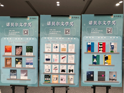 近日,诺贝尔文学奖揭晓,借此文学盛事,图书馆推出了“诺贝尔文学奖”电子书展,将经典作品与移动阅读相结合,为读者打造了一场触手可及的文学盛宴。本次展览集中呈现近三十年诺贝尔文学奖得主及其核心代表作。读者只需使用手机扫描海报上的二维码,即可直接跳转至电子书阅读界面,实现经典作品的“掌上阅读”,随时随地畅游书海。