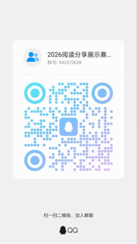 扫描报名二维码,加入2026阅读分享展示赛QQ群,填写群中报名表。