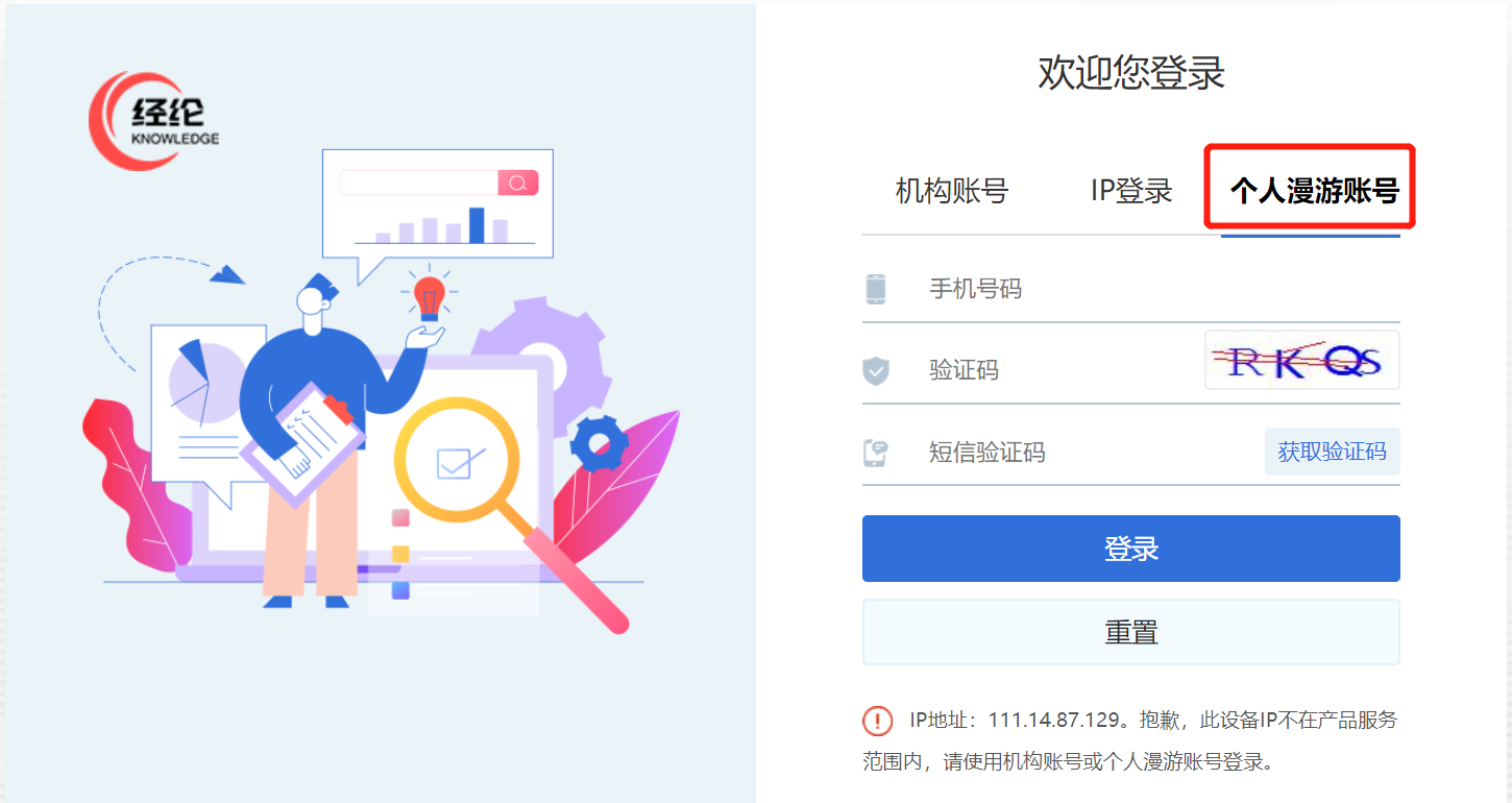 个人漫游账号注册完成后,可在任意的电脑终端获取中外文文献。通过手机号和验证码登录。对于校外办公、防控隔离、使用公共电脑的用户非常方便。