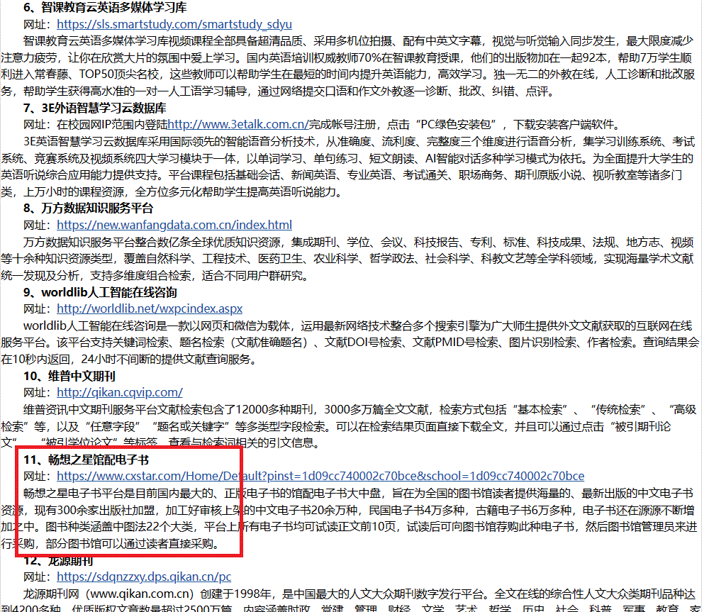 一、访问图书馆官方网址:http://lib.sdyu.edu.cn/index.htm,点击数字资源,选择11.畅想之星馆配电子书即可登录平台。