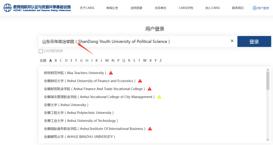 方式二:打开浏览器,输入https://ds.carsi.edu.cn/,按下图方式即可访问学校其他学术资源。