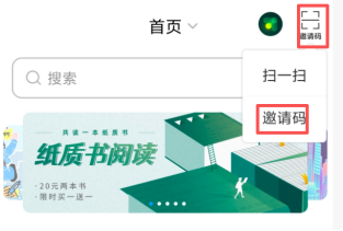 (2)登录后进入首页,点击“邀请码”按钮,输入邀请码“sdqnzzxy”点击确定,进入图书馆首页。